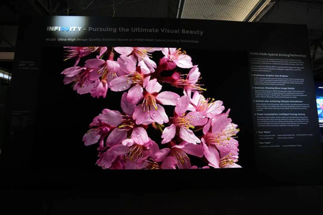 展台焦点当属“无极Infinity MLED超高画质解决方案”。该方案凭借领先的智能算法与图像处理引擎,赋能MLED显示屏呈现出极致细腻的光影层次与流畅的动态画面,将“真实之美”跃然眼前,吸引了全球专业观众的零距离体验。