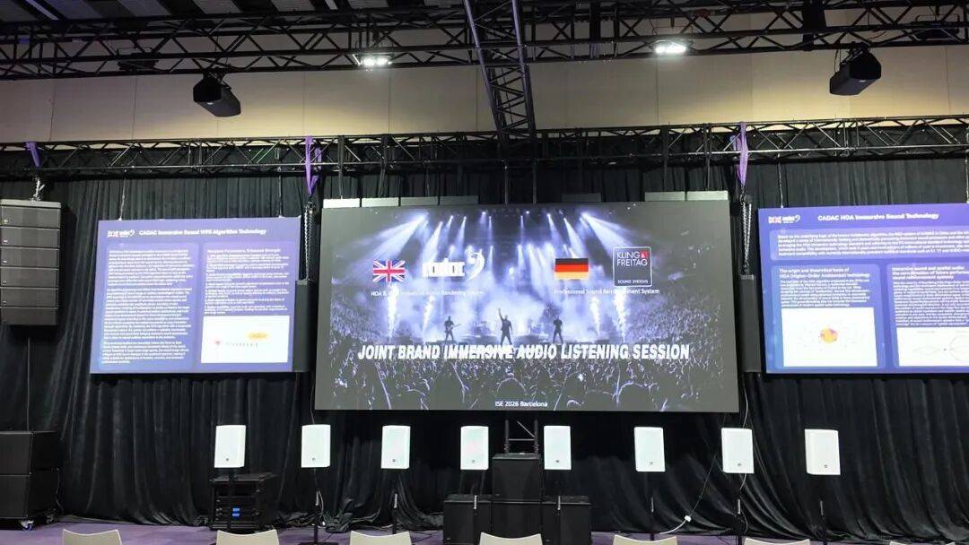 中国音王集团旗下国际著名品牌CADAC沉浸声技术今年再次亮相ISE展会,在E4馆设有超大空间HOA与WFS双系统的沉浸声技术演讲与体验。