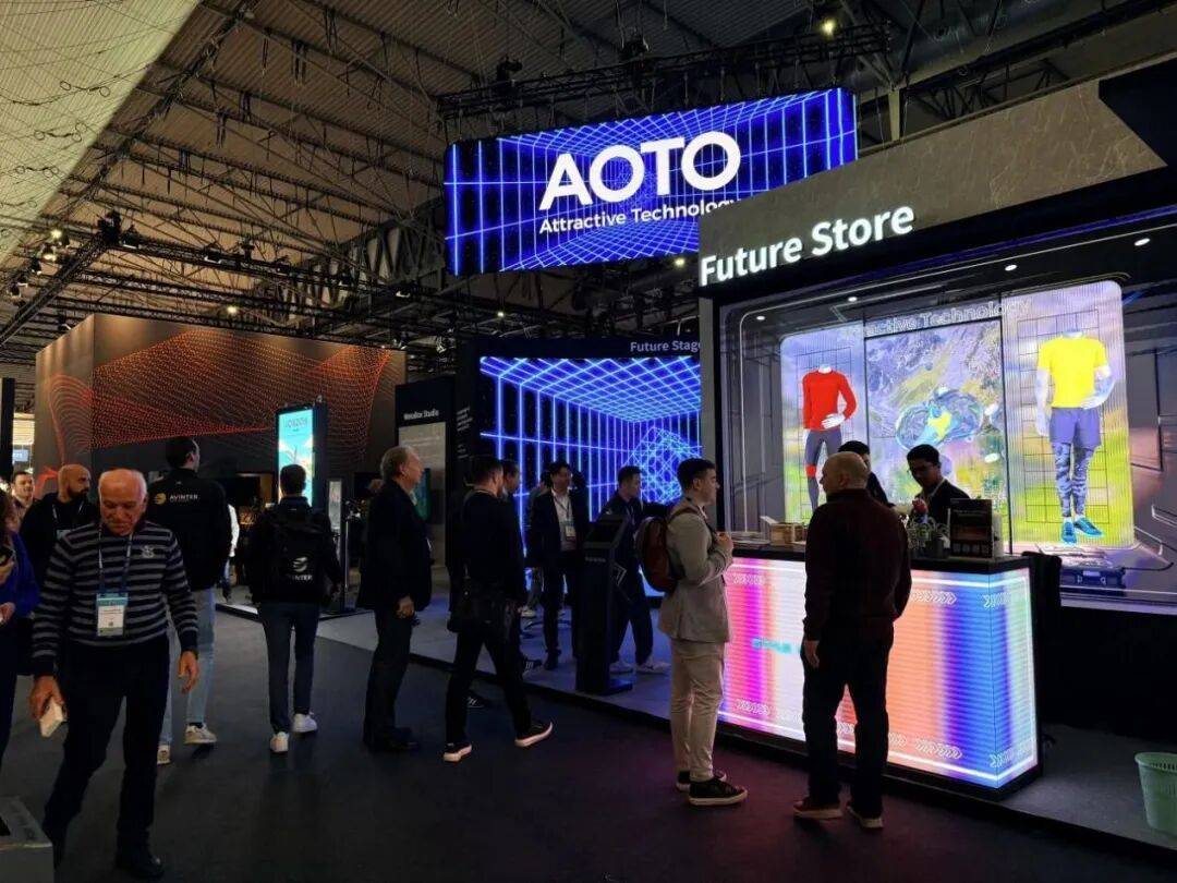 奥拓电子以“AI+视讯”为核心战略,在本次展会上系统呈现了从技术到场景的全面创新实力。现场重磅发布的MetaBox Studio 个人虚拟直播间成为焦点。该方案深度融合Vormir AI资产库与星核渲染引擎,用户仅需向AI助手描述场景,即可在15分钟内完成从AI生成到开播的全流程,极大降低高质量虚拟内容制作的门槛。另一亮点是Future Store沉浸式空间,展示了屏幕作为智能交互界面的能力。系统可感知观众驻足行为并实时切换内容,目前已在伦敦牛津街等国际地标成功应用,实现了空间氛围的快速重构与体验升级。