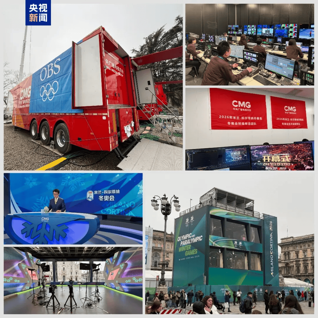 此次总台在米兰国际广播中心IBC搭建了1700平方米的工作区,设立高效协同的全媒体报道中心及三个演播室系统,并在米兰大教堂、利维尼奥雪场搭建外景演播室,精心打造《全景米兰》《破冰吧!冠军》《冰雪荣耀》等一系列融媒体节目,为观众带来全方位、沉浸式的冬奥视听体验。